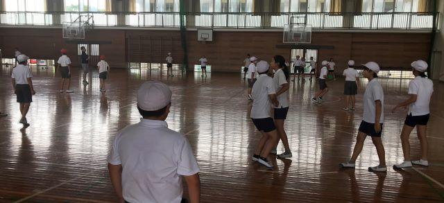 8月31日(月) 今日の3校時授業を見て回っていると、3年生が体育館一杯に場を広げて「体ほぐしの運動」を行っていました。
