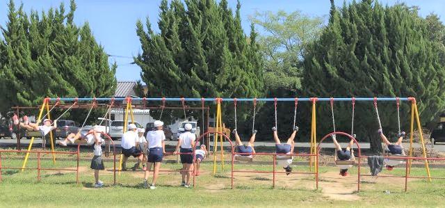 9月29日(火) 昼休み子供たちは、屋外で野球やサッカー遊び、ブランコのパフォーマンス、1年生のかけっこ、鬼ごっこ(途中で集まって)笑顔いっぱいで楽しく遊んでいました。