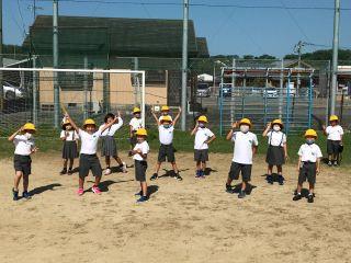 8月25日(火) 8時頃の運動場です。暑い中4つのグループが遊んでいました。