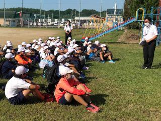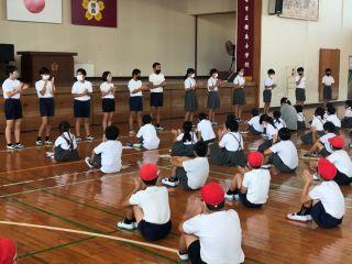 9月25日(金)12時10分~12時50分の間、安全のため運動場に出て、全校児童で体ほぐしの運動とゲームをしました。バランス運動やじゃんけんゲームで和やかな時間を過ごすことができました。