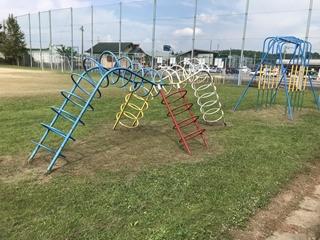 8月26日(水) ここ数ヵ月間、経年劣化のため一部使用中止にしていたジャングルジムですが、本日修理をしていただきました。ブランコに並んで子供達に人気のある遊具なので、今度からは、思い切って遊ぶことができるようになりました。