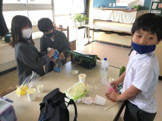 9月17日(木) 午前中授業を見回ったときの授業の様子を2例紹介します。1つは、5年生外国語での会話の場面です。もう一つは、4年生理科の水の行方の実験の様子です。