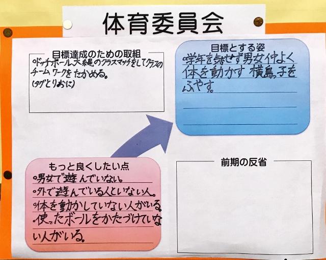 5月7日(火) 今日は、8人の運営委員の子供達に、昼休みにもかかわらず校長室に集まってもらいました。目的は、運営委員に横島小をよくするための主体的な取組を考えてもらうためです。ミッションは、「地域の人に感謝の気持ちを伝える。地域に貢献する。地域の人に元気を与える。」で考えてもらいました。1日目の今日は、横島小の子供達の強み(いいところ)と弱み(課題)を出し合いました。残念ながら話し合いの写真を撮りそびれましたので、マネジメントシートだけを紹介します。強みとして出されたのは、「あいさつが上手」「みんな仲がよい」「元気がよく外でよく遊ぶ」少数意見としては、「下級生に気を配れる」「器が大きいからすぐ仲直りできる」というのもありました。課題としては、「廊下を走る人がいる」「1分前着席ができない」「言葉遣いが乱暴」などがありました。