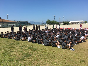 今日は、入退場の練習、応援と紅白リレーを並行して練習しました。