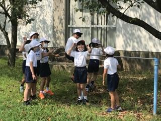 10月1日(木)業間のグリーンステージで、1年生が楽しそうに遊んでいました。カマキリを捕まえて見せに来た子もいました。