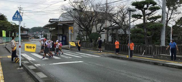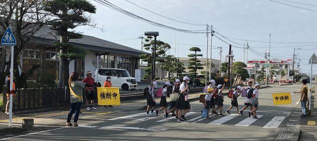 9月23日(水)朝の登校指導の様子です。今日もいつものように保護者地域の皆様のご協力で、子供たちの安全な登校ができました。大変ありがとうございました。