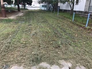 8月26日(水) 子供達が遊ぶ遊具の周りや旧ゴミ捨て場周辺が、草が伸び放題になっていました。遊具の周りは、盆前に一度草刈りをしていたのですが・・・。学校で一番忙しい教頭先生にも手伝っていただき、少しきれいになりました。