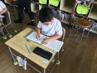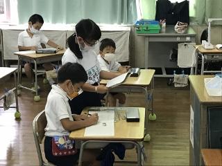 9月3日(木) 3校時、1年2組で、算数「どちらがおおい」の研究授業がありました。1年生は、今年度、学びを初めて3ヶ月ほどしかたっていないのに、「めあて」「見通し」「自分で」「みんなで」「まとめ」「適用問題」「振り返り」に沿って、学習が進んでいました。感心しました。実験の場面では、友だちと協力して活動できていました。
