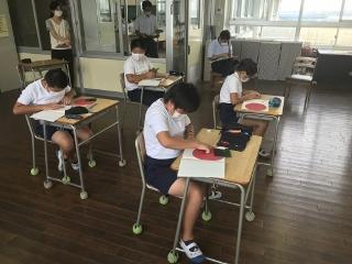 8月27日(木) 3年生もひまわりのせいくらべに協力してくれていました。写真は、総合的な学習の時間でひまわりの種を数えている所です。一番多いのは、2525個も種が育っていたそうです。この他、寄せ書きも作成してくれています。