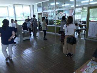 7月9日(木) 今日は、2年生、4年生、6年生の歯科検診を実施しました。機材は、アルコール消毒してあり、一人一人交換して行われます。これは今までもそうでした。新たな対策としては、子供達の距離を保つことです。子供達は約束を守って臨んでいました。写真は、2年生の始まる前の様子です。