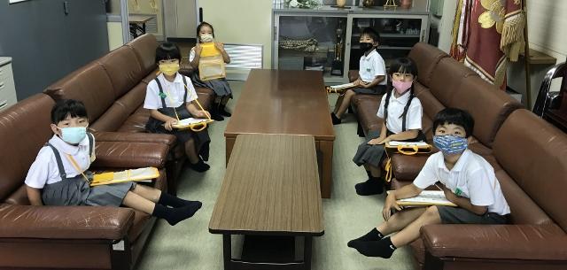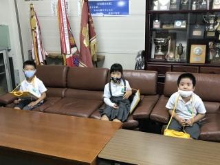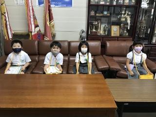 7月3日(金) 1・2校時1年1組が、学校探検をしました。3~4人のグループに分かれ、色んな場所を訪れていました。校長室にも来てくれました。校長室では、一杯ある写真やトロフィーについてなど色んな質問が出ました。私からは、昔の小学校や中学校の校舎の写真の話をしたり、耐火書庫とソファーの役割などを考えたりしてもらいました。