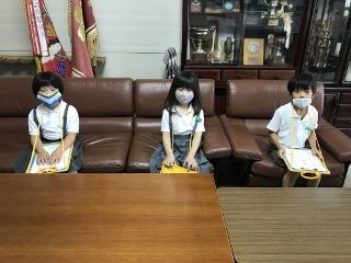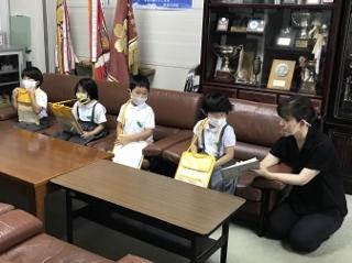 7月3日(金) 3・4校時1年2組が学校探検をしました。校長室を訪れたときの写真です。