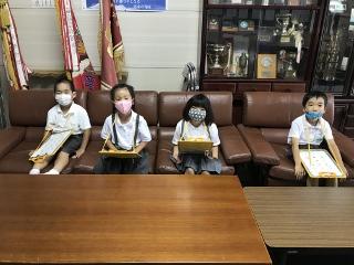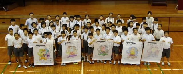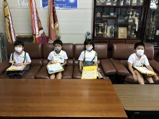 6月30日(火) 本日、業間に3名の子供達が、校長室で「こどもエコ絵画コンクール」の表彰を受けました。作品は、ポスターになったり、車にペイントされたりして、PRに活用されます。