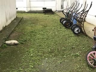 7月8日(水) 草が伸びるのは早い!梅雨に入る前に刈ったと思っていたのに、もう伸びています。最初の3段は、ビフォーとアフターです。