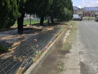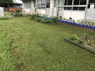 7月17日(金) 朝の登校指導・あいさつ運動の後、6年生の男子2名が草取りをしてくれました。前から気になっていたバス停横の花壇です。声をかけたら喜んで協力してくれました。ありがとう。