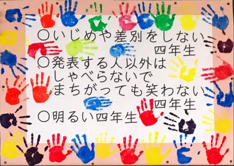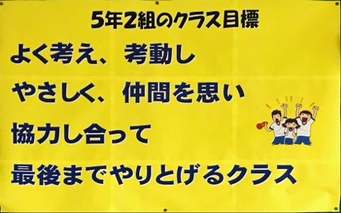 7月8日(水) 先日の授業参観で目にされたと思いいますが、各学級に学級目標が掲示してあります。今日はこれを紹介したいと思います。子供達と担任の思いが詰まった目標です。