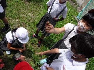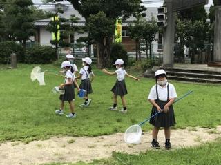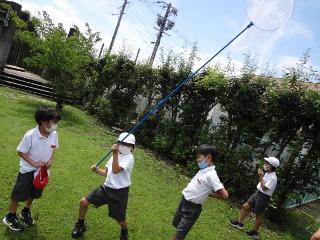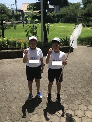 7月8日(水) 2年生が生活科の授業で虫取りをしました。みんな必死になって虫を追いかけていました。とても楽しそうです。