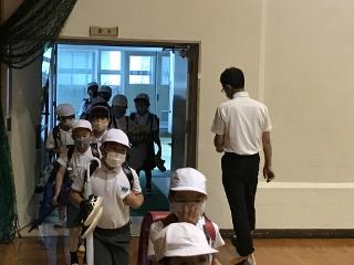 7月10日(金) 14:10に「警戒レベル4」の避難勧告が出たことと下校時刻前後の雨の予想から児童引き渡しを急遽実施しました。トップページにも書きましたが、急な実施にもかかわらず児童や教職員も落ち着いて対応できました。保護者の皆様のご協力もあり、混雑することもなく引き渡しを終了することができました。大変ありがとうございました。ちょっと遅くなってしまいましたが、本日子供達に「緊急時の児童引き渡しについて」という文書を持たせています。また、いつ引き渡しが必要になるか分かりませんので、熟読をお願いします。