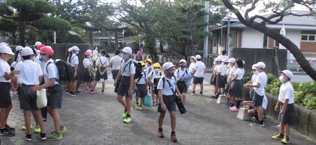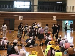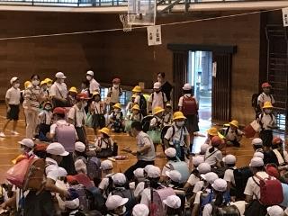7月20日(月) 延期していた地震・津波の避難訓練を行いました。本来なら遠足の時、山の上公園への避難経路を確認して、早い時期に訓練を行うようにしていましたが、この時期になってしまいました。暑さも考え1時間目終了後、時間を確保して行いました。子供達は、暑さに負けず頑張っていました。