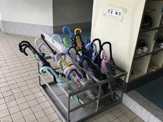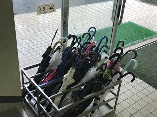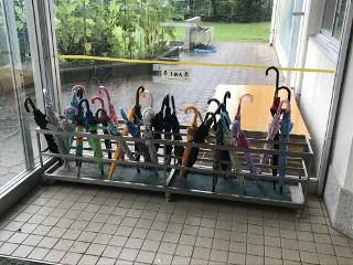 7月27日(月) 今朝は登校前に雨がひどく、登校時も少し雨が降る天気でした。その後、校舎を回っていると傘立ての様子が目に入ってきました。いくつか開いたままの傘や方向がずれている傘がありましたが、6学年とも割ときれいに並べることができていました。ちょっと感心したところです。