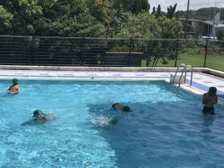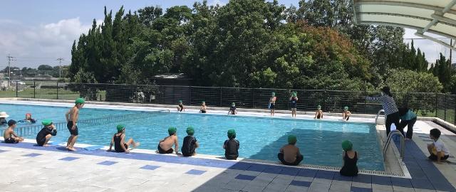 7月29日(水) 今日から、各学年の水泳まとめの会が始まる予定でしたが、新型コロナ感染症の状況の変化により、急遽保護者の参加を取りやめることにしました。大変申し訳ありませんでした。特に1年2組は、急な連絡にもかかわらずご協力いただき大変ありがとうございました。会の様子を撮影しましたので、少し紹介させていただきます。〔小プール〕ビート板ありなしでのバタ足や〔大プール〕バタ足で距離を測定したり宝探しが行われたりしていました。たくさん宝を拾い喜んでいる児童もいました。