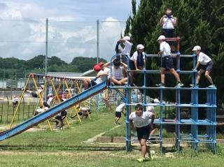 7月29日(水) 気温30度を超える中、子供達は、元気に外で遊んでいました。感心します。