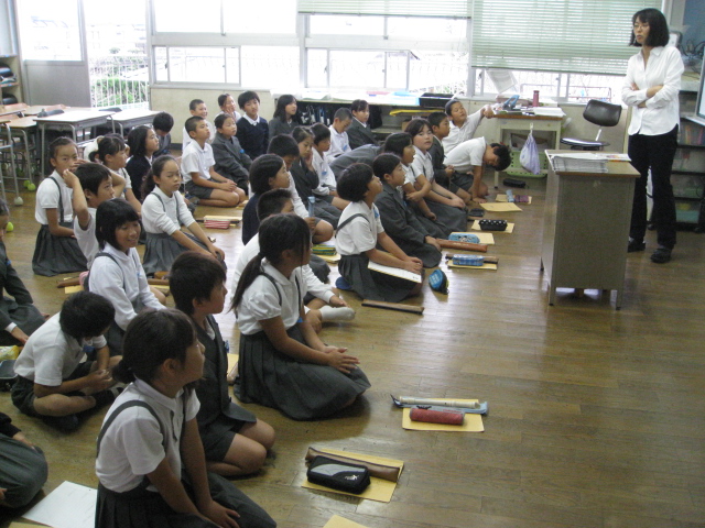 4年生が、総合的な学習の時間の学習として、慈幸苑に行って、デイサービスや入所されている方々と交流をしました。班毎に風船バレーや紙相撲、あやとり等をして一緒に遊びました。また、全体の前で、子ども達が「365歩のマーチ」「ビリーブ」を合唱し、「ドラゴンナイト」のリコーダー演奏をしました。お年寄りからアンコールがあり、「365歩のマーチ」はもう一度合唱しました。大変より交流ができました。