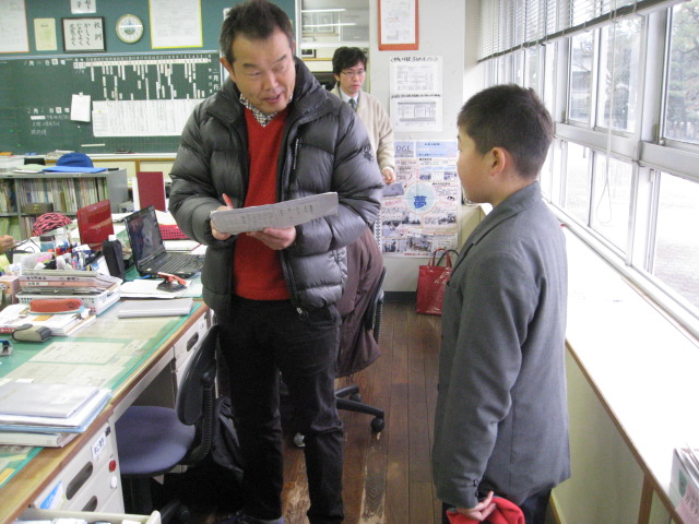 1月30日(金)毎週金曜日の朝、登校班長は、登校班日誌に登校の様子を自己評価し、地区担当の先生に報告にくることになっています。登校状況は決していいとは言えず、どの班も課題があります。担当の先生と相談することによって、改善を図っています。