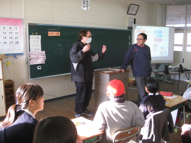 1月9日(金)ALTのアンドリュー先生が来校され、外国語(英語)の授業がありました。恥ずかしがりながらも声に出して英語に慣れ親しんでいる子どももいました。