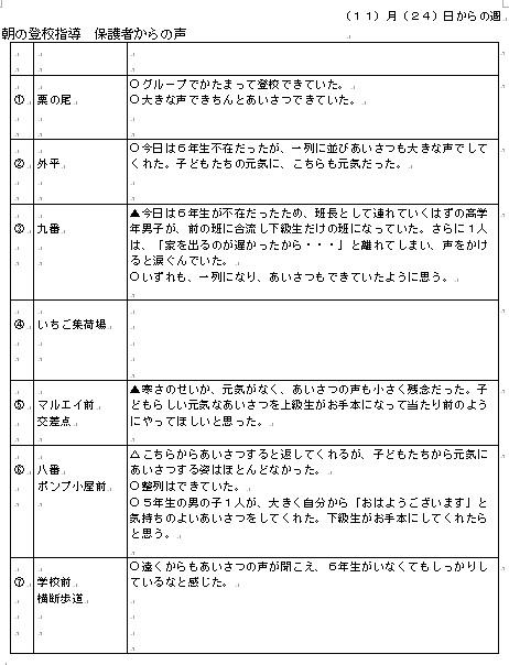 保護者からの声 投稿日時 : 2020/11/26 承認者 11月26日(木)24日(火)の登校指導の時の声です。なかなか100点にはなりませんが、子供たちは、保護者や地域の方に見守られながら成長していきます。いつも声掛けご指導ありがとうございます。 {{options.likeCount}} {{options.likeCount}} 0 コメント