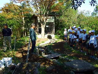 校庭のすみにある「学びの森」は、蛍の幼虫が育つ森でもありますが、
