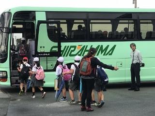 見学旅行へ出発 投稿日時 : 2019/10/24 承認者 10月24日(木) 3年生が8時35分過ぎに町図書館駐車場を出発しました。心配された天気もどうにか持ちこたえてくれそうです。今日の見学予定は、歴史博物館こころピア、中川海苔、横島干拓、水本オレンジガーデンです。