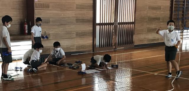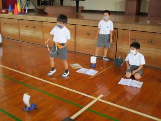6月25日(木) 3年生が、体育館で理科の授業の実験をしていました。主体的に行動し、とても楽しそうでした。