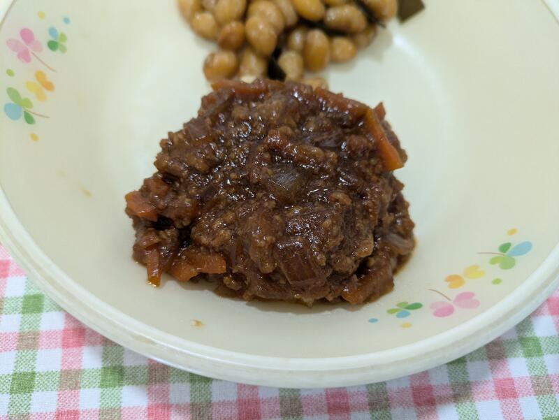 豆腐の味噌あんかけは、豚のひき肉に人参と玉ねぎを味噌に入れて、あんが作ってありました。甘みと塩加減がとてもよくて、そのあんを揚げ出し豆腐にかけてありました。子どもたちも喜ぶおいしさで、ご飯にぴったりのおかずでした。