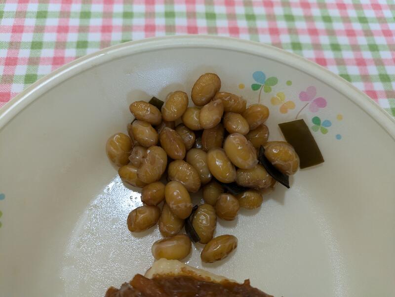 横島小の座禅豆は、大豆に昆布を入れて甘辛く煮てあり、これまたご飯のおかずにぴったりのおいしい座禅豆でした。
