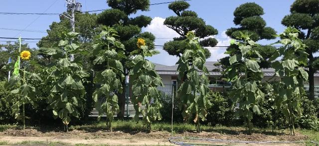 7月17日(金)のひまわり 投稿日時 : 2020/07/17 承認者 草丈2m60cm、一番高いところ2m73cmでした。今日は、プロジェクトの子供達が、田んぼの管理(雑草取り)に、学校園に出かけるので、昼休みの酵素をかける活動ができませんでした。私がかけていると2年生の男の子が、2人近づいてきて手伝いをしてくれました。ありがとう。また、マルハナバチ?とアゲハチョウがひまわりのそばで飛び回っていました。 Tweet {{options.likeCount}} {{options.likeCount}} {{options.unlikeCount}} {{options.unlikeCount}} 0 コメント