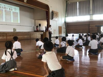 夏休み明け集会 投稿日時 : 2022/08/29 1年担任 8月29日(月)から、学校がいよいよ始まりました。夏休み明け集会で、校長先生のお話を聞いているところです。 1年生は、朝から久しぶりに学校まで歩いてきて、きつかったそうです。でも、学校では友達と会えたので、とても元気でした。夏休み中に大きな事故の報告を聞くこともなく、過ごせたので、担任一同うれしいです。まだまだ感染症対策に気をつけて、過ごしていきたいと思います。前期後半も頑張ります。 Tweet {{options.likeCount}} {{options.likeCount}} {{options.unlikeCount}} {{options.unlikeCount}} 0 コメント