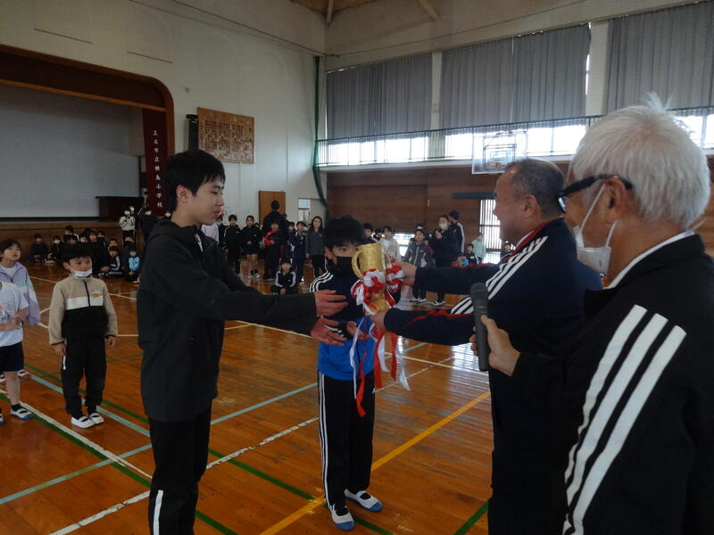 獲得合計点が同点で、2つの班が同点優勝でした。優勝した班には、子どもたちが手作りした優勝カップが授与されました。