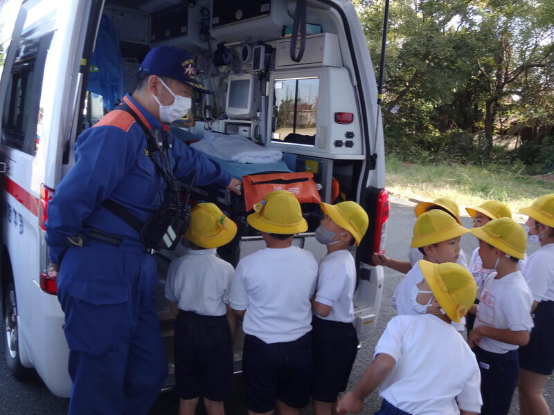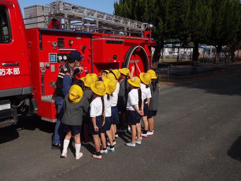 1年生は、火災避難訓練の後、消防車と救急車の見学もさせたいただき、とても喜んで学習しました。