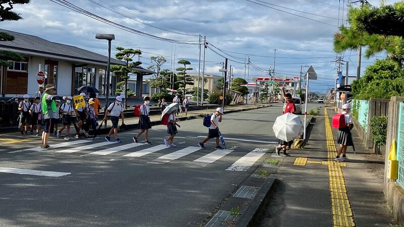 前期後半が始まりました 投稿日時 : 2023/09/01 承認者 8月28日(月)から前期後半が始まりました。子供たちはもう少し夏休みがあるといいのになという思いを抱えながらの登校だったようです。ただ、中には、友達と会えるから早く始まってほしいといっている子供もいたようです。みんな毎日元気に登校し楽しく学校生活を過ごしてほしいと思います。写真は、交差点や校門前での登校指導の様子です。