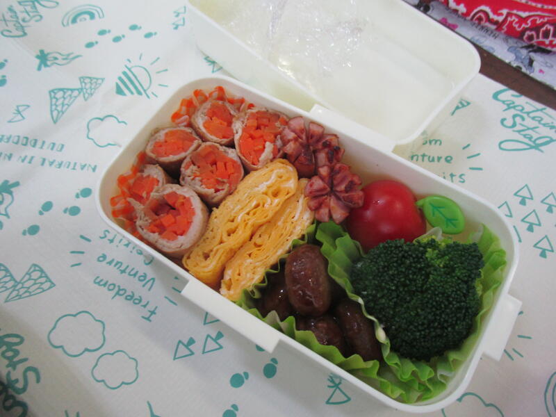 また、天気が良ければ遠足に行く予定でしたが、雨のため校舎内でお弁当を食べました。「たまご焼きは自分で作ってみたよ。」「キャラ弁作ってもらった。」「いちごばいっぱい入れてもらってる。」などなど、楽しくおいしくいただけていたようです。帰りの会で「今日のきらり(その日いいことをしてきらりと輝いていた人)は、おうちの人です。」と言うと、うれしそうな笑顔を見せてくれたのが印象的でした。
