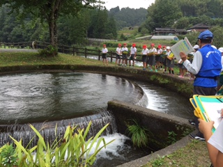 9/23(金) 4年生が上益城郡山都町へ見学遠足に出かけました。 写真は、円形分水で学習している模様です。