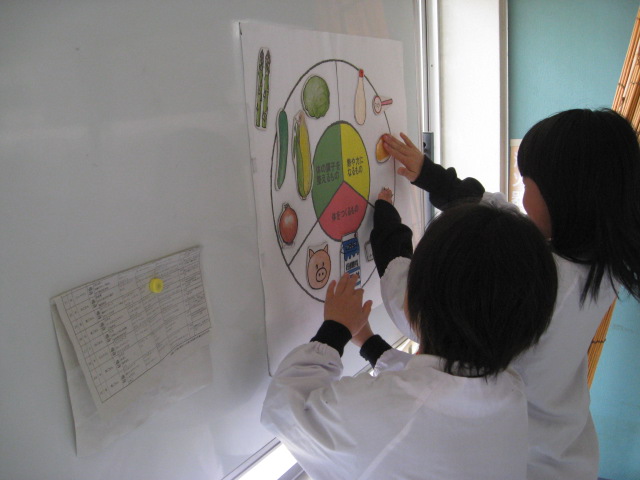 給食委員は、ランチルーム給食の放送、準備片付けの手伝い等の仕事をしています。昼休みも明日の準備をがんばっています。