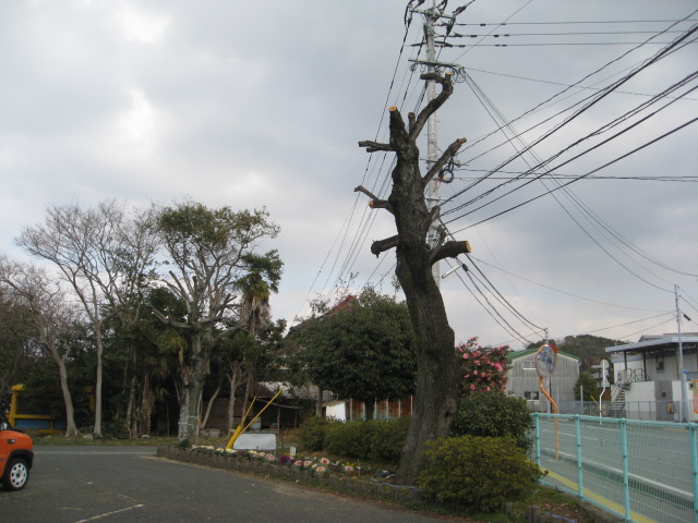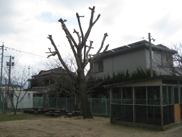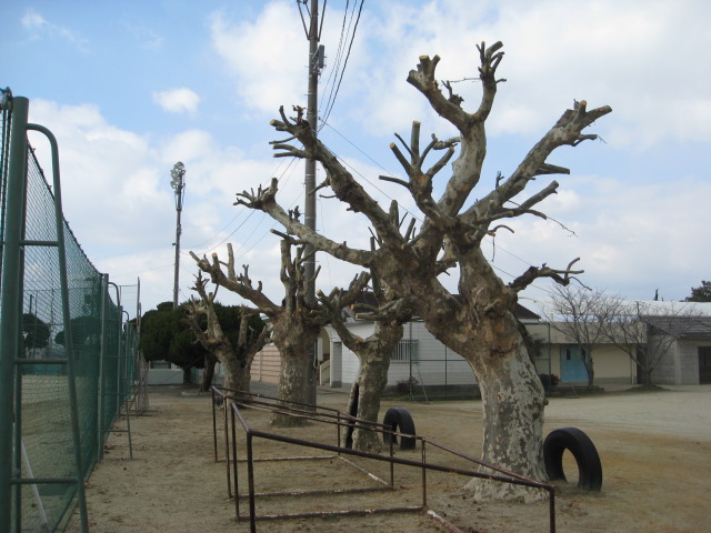 伸びすぎていた樹木の剪定をしていただきました。秋から冬にかけて落ち葉に悩まされ続けていますので、少しは助かると思います。鶏小屋横のイチョウ、体育館入り口のセンダン、エノキ、運動場のスズカケ等すっきりしました。すっきりし過ぎかな、と思いますが、春には枝が伸び葉が茂り、また3~4年で元のように戻ります。