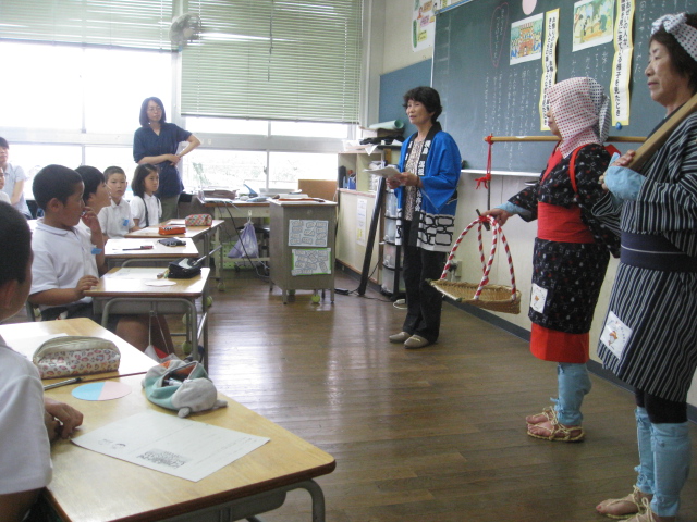 6月15日(月)4年1組で道徳の校内の研究授業がありました。「祭りだいこ」というお話から、地域の伝統や文化を受け継いでいくことの大切さや郷土を愛し、誇りに思うことの大切さについて学習しました。担任以外に、潟担い節踊り保存会から3人来ていただき、お話をしていただき、子どもたちもしっかり考えを書いている子どもが多かったです。