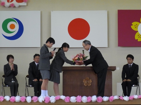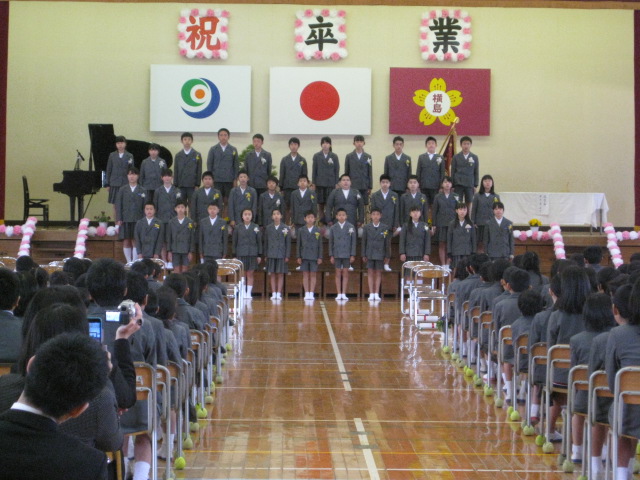 3/24(木)平成27年度卒業証書授与式が行われました。よく成長したと実感できる卒業式でした。卒業生の態度がとても立派でした。もちろん柴尾さんから贈られたコサージュを卒業生全員が胸につけての卒業式でした。保護者の中には、自分が小学校の時もコサージュを贈られた方もおられました。
