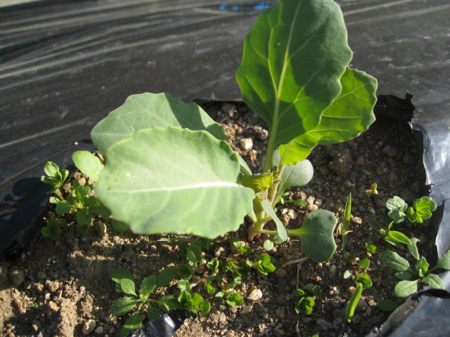 3年生が5月に学習するモンシロチョウの成長の様子(たまご→幼虫→さなぎ→成虫)を観察するために、2月にキャベツの種を植えたのが、10cmぐらいに成長しています。5月にはもっと成長したくさんのモンシロチョウが寄ってくると思います。