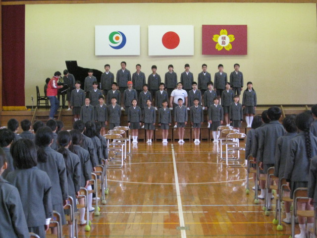 3/9(水)音楽集会がありました。卒業式で在校生が歌う「ビリーブ」の練習をしました。ピアノ伴奏と初めて合わせました。