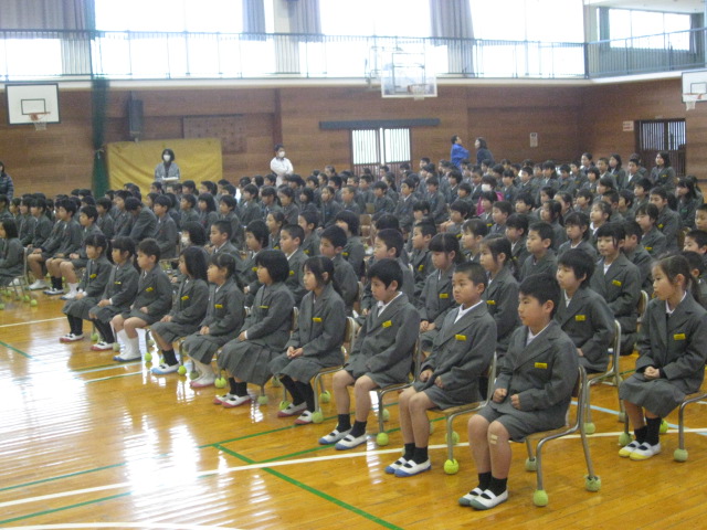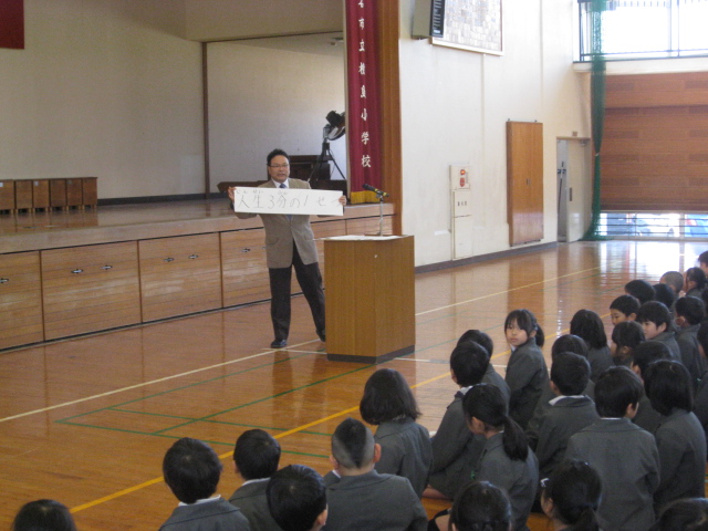 3/2(水)本年度最後の全校朝礼がありました。校長先生の話は、時間を大切にしようという内容でした。児童の皆さんは静かにしっかりと話を聞いていました。
