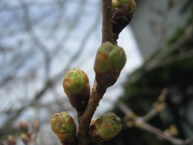 サクラの芽(つぼみ)がさらに膨らんできました。早いのは20日過ぎには咲くのではないか、と思いますが、どうでしょうか。